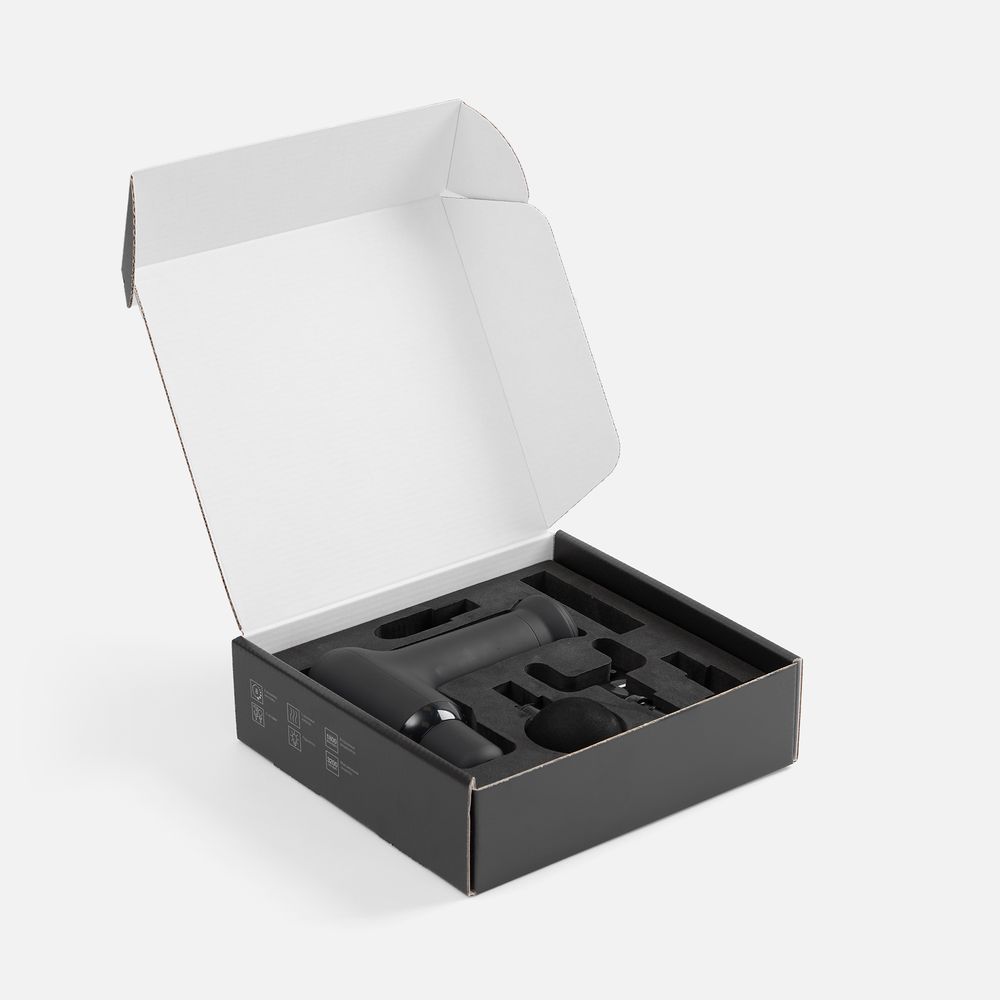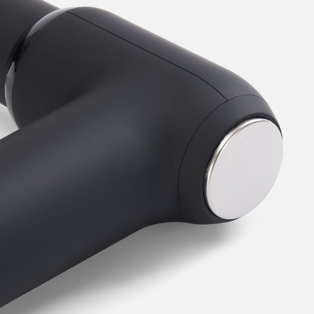 Конструкция массажера выполнена в форме мини-пистолета с тактильно приятным матовыми покрытием и эргономичной ручкой — его удобно держать в руке, а простая система управления при помощи кнопок делает его использование комфортным и понятным.