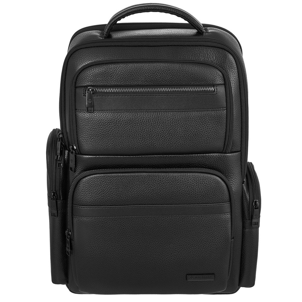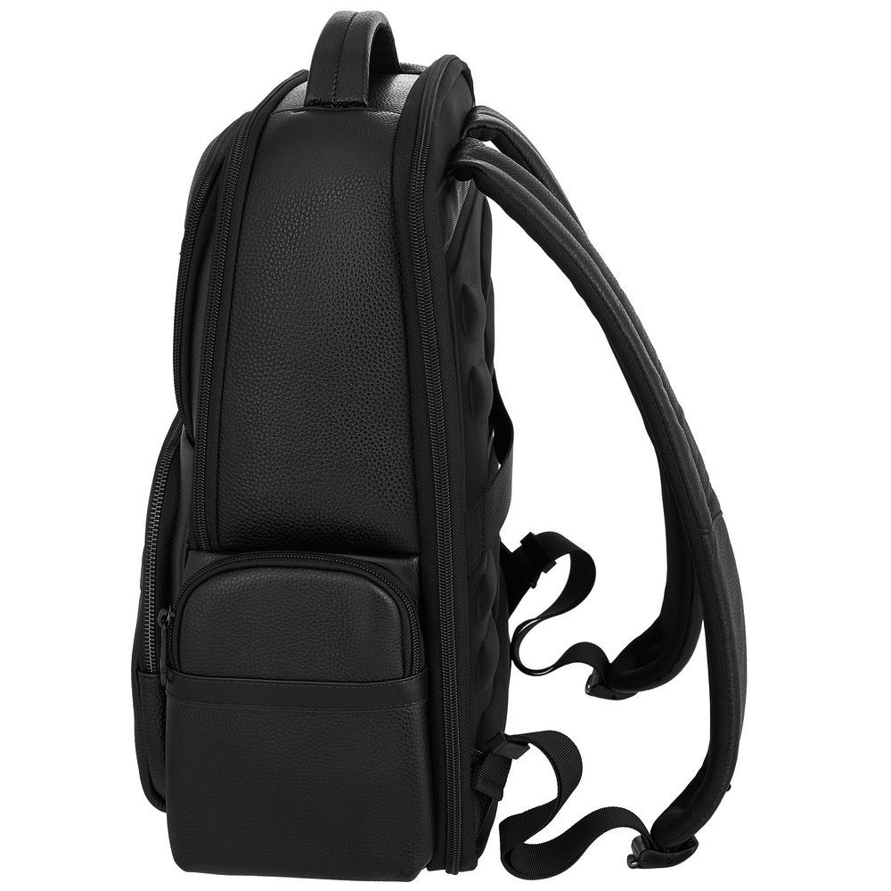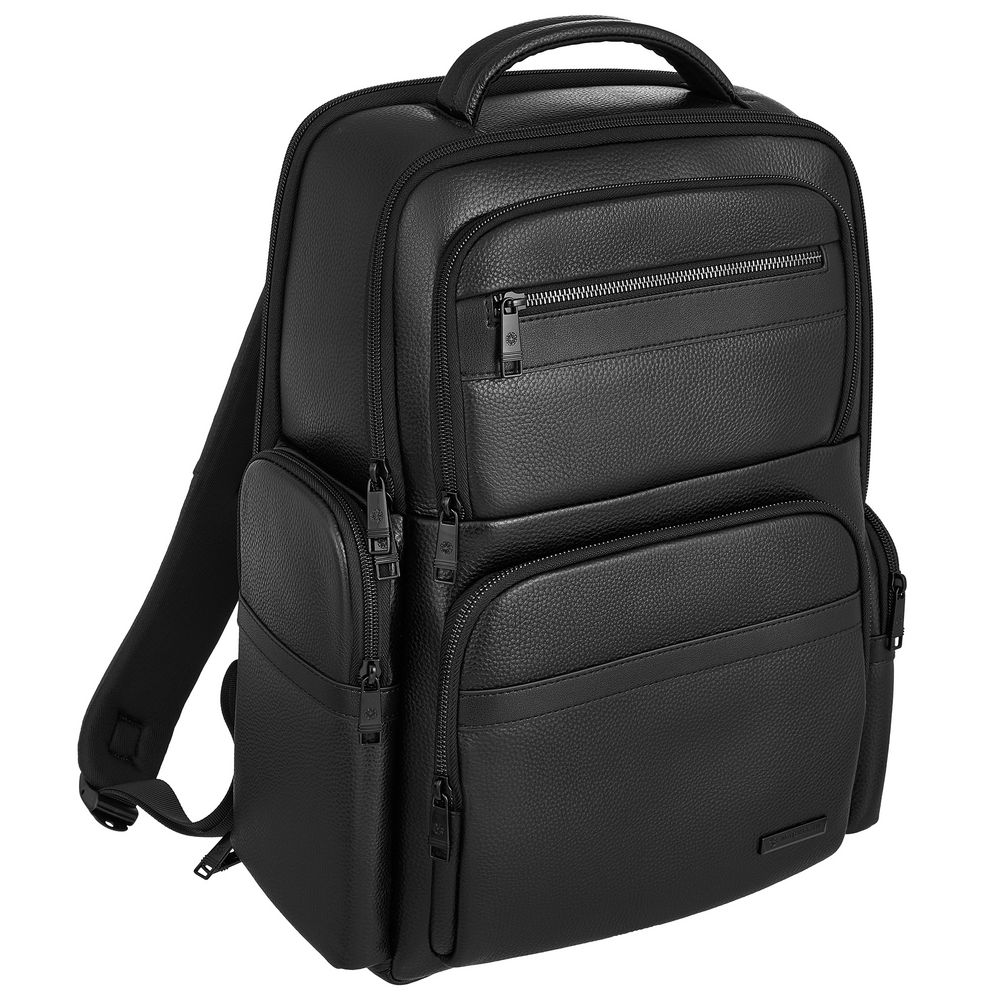 Рюкзак мужской BUGATTI Clark, чёрный, воловья кожа/полиэстер, 30х10х40 см, 12 л
