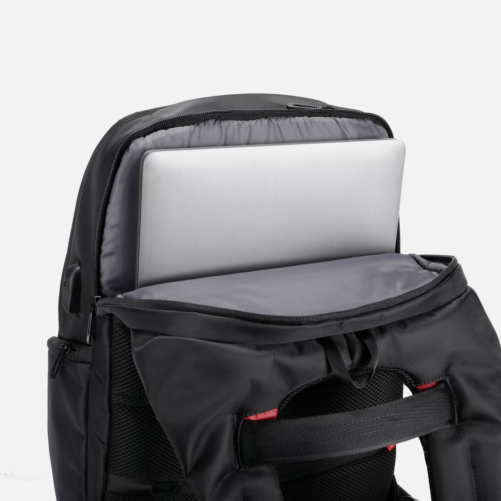 Рюкзак мужской BUGATTI Clark, чёрный, воловья кожа/полиэстер, 30х10х40 см, 12 л
